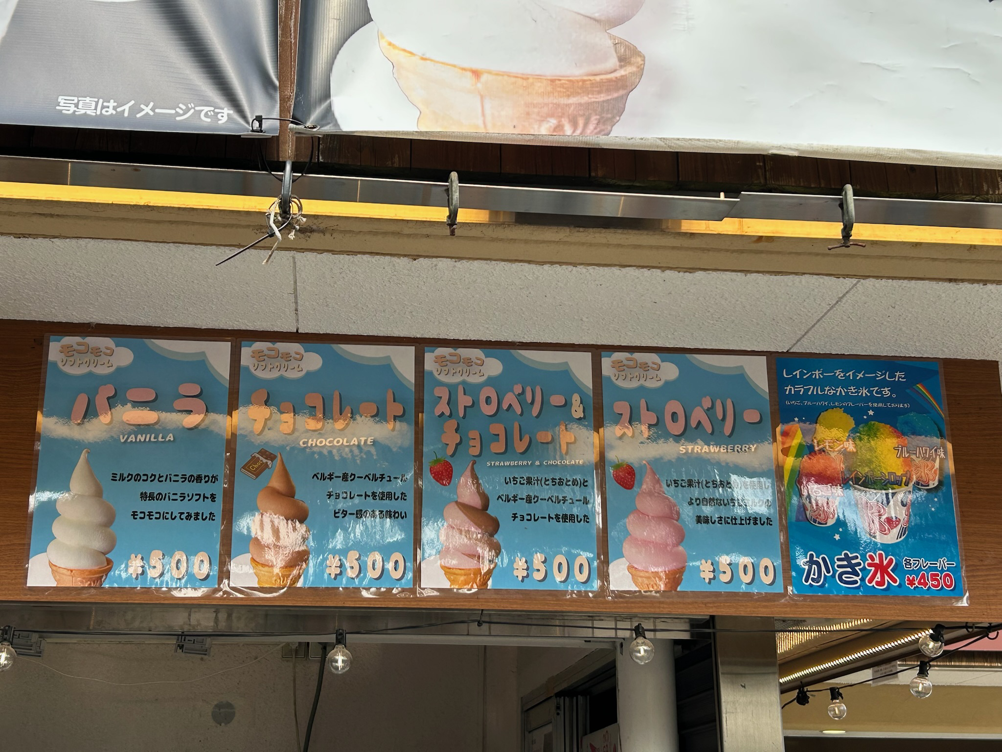 入って少し歩くとアイスクリームとかき氷、他にも食べ物とかあった。