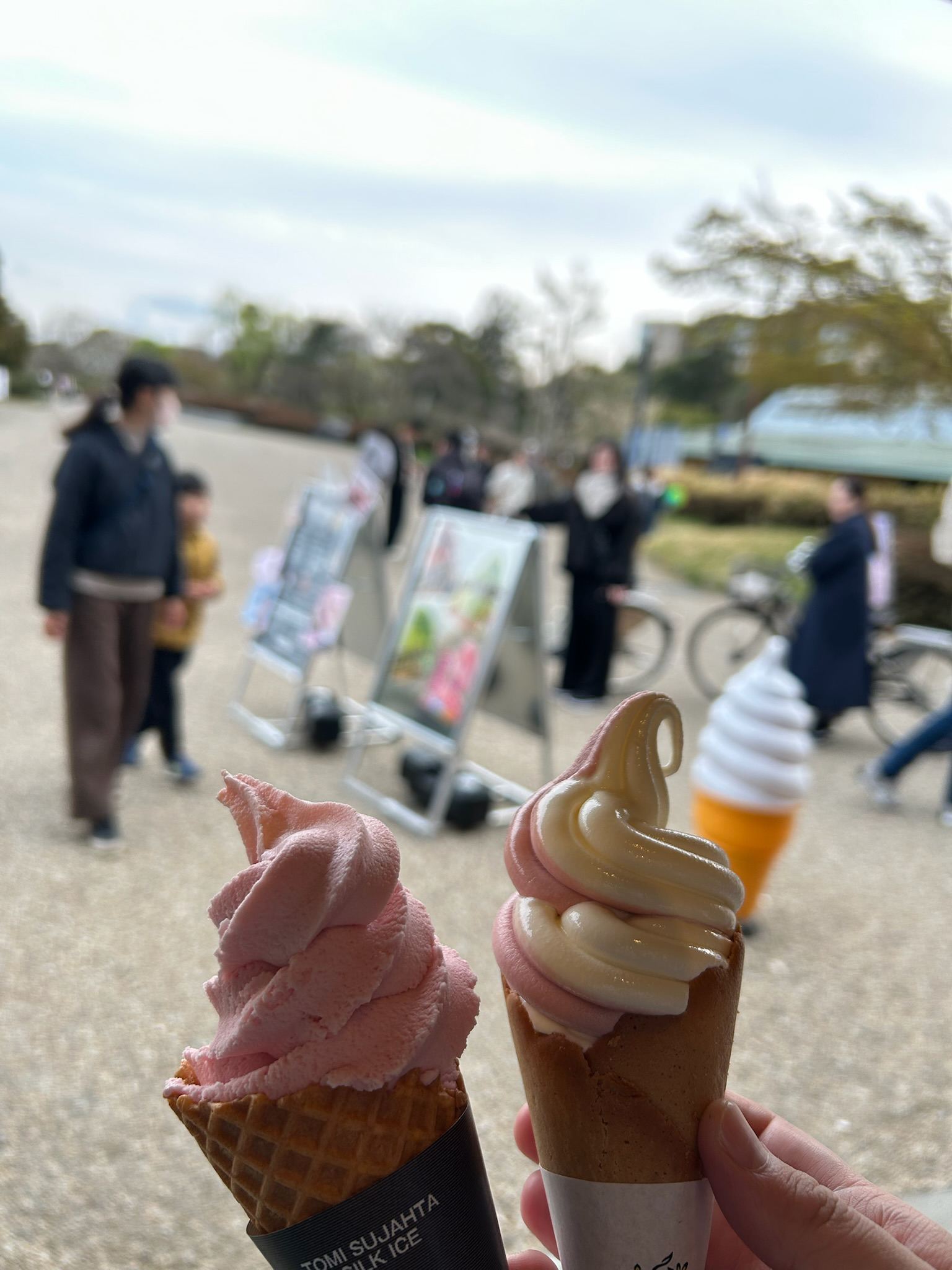 とてもいい公園だった。特にお花がたくさん咲いていて、春を感じられた。 ソフトクリームが至る所にあって、食べるのが楽しかった。 かき氷もあるので、夏に行くのも良いかもしれない。 食べ物代と入場料あわせて大体4000円くらいだった。(2人分)