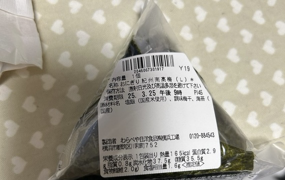 - 原材料表示:紀州南高梅を使用した具材の詳細