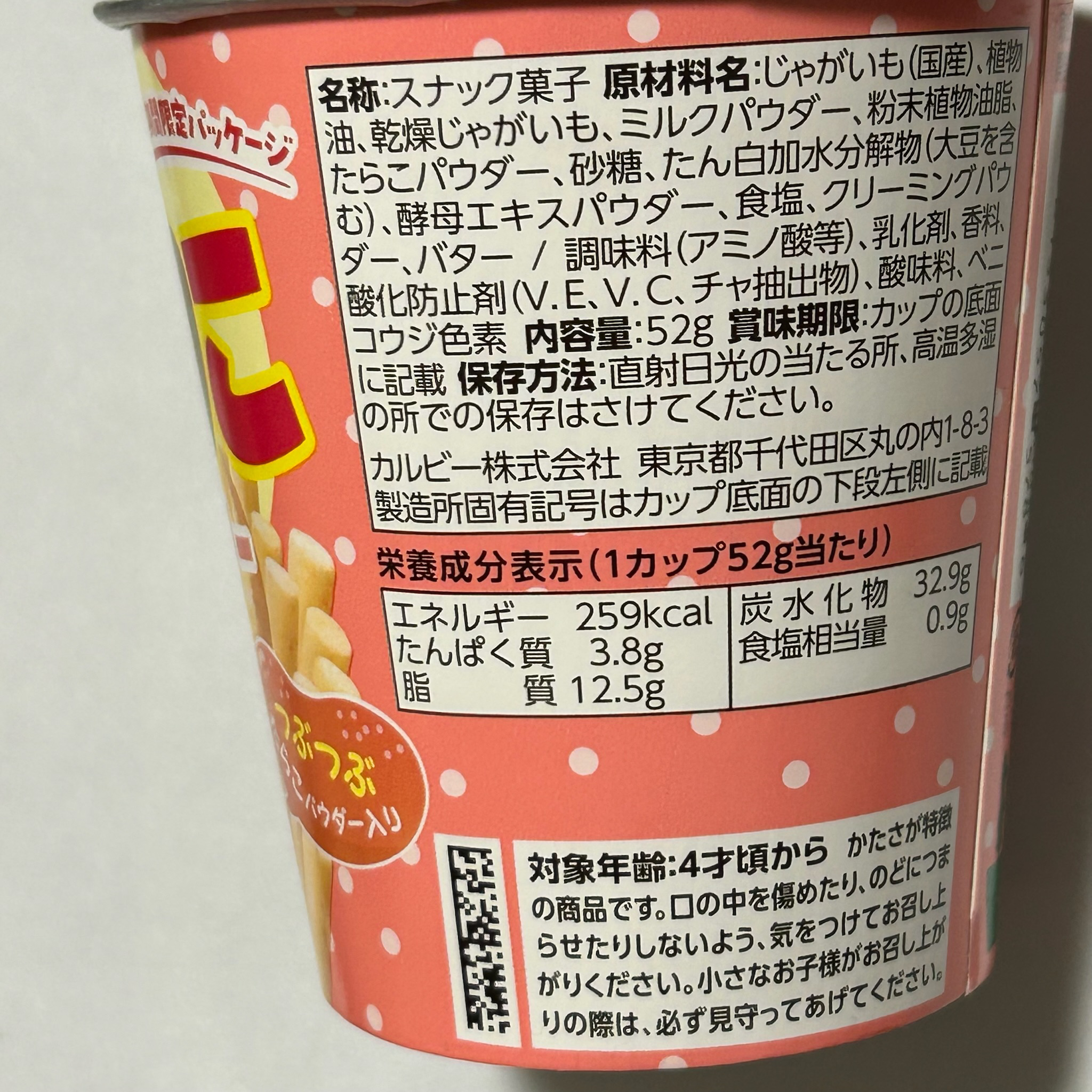 - 商品名:じゃがりこたらこバター味(期間限定)
