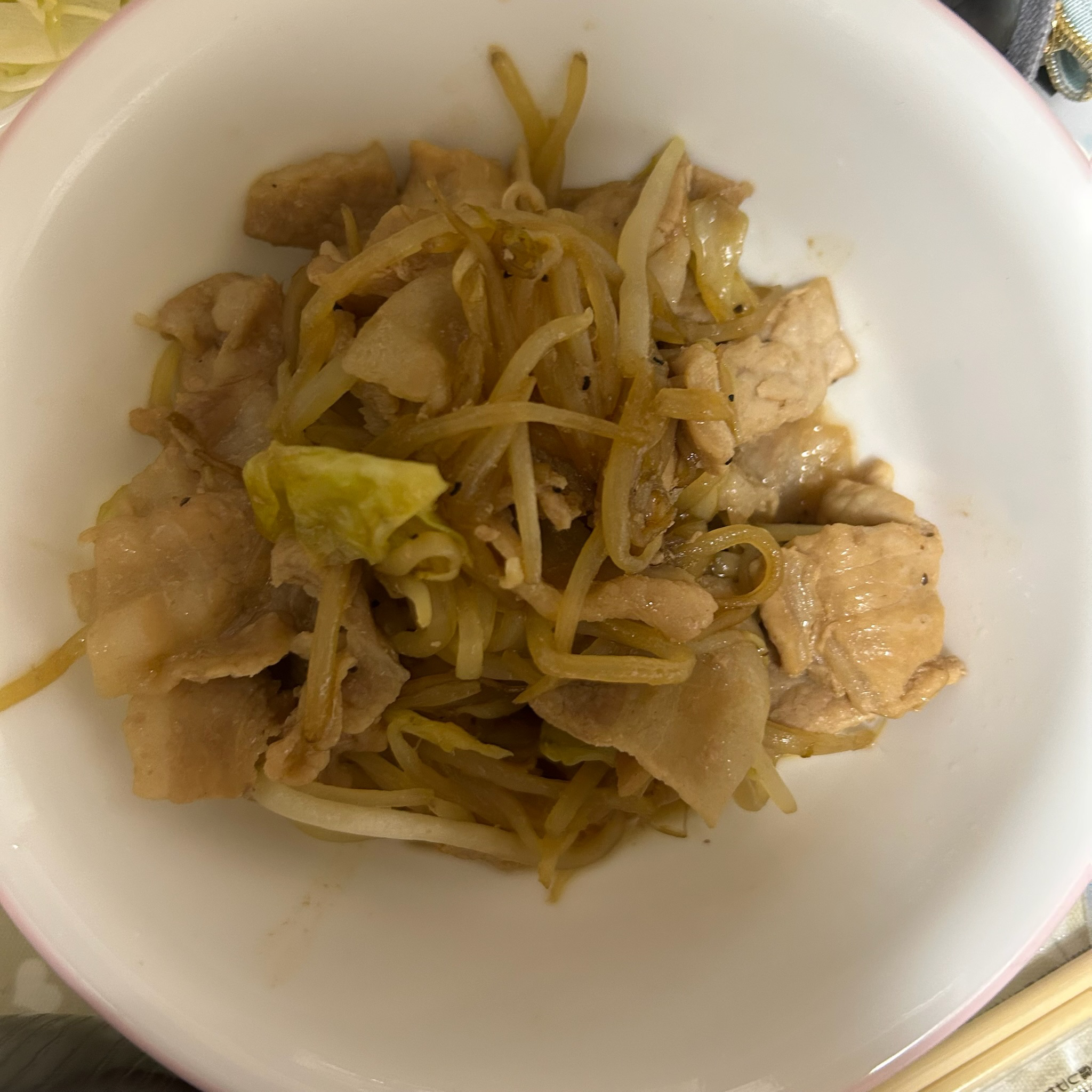 料理1(豚バラとキャベツともやしのブラックペッパー和え):